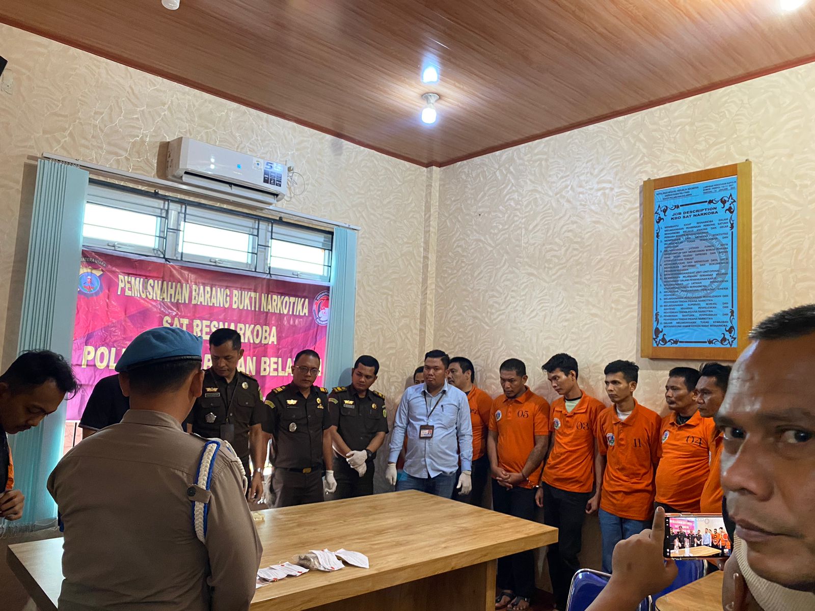 Kasat Narkoba Polres Pelabuhan Belawan, AKP Ismail Pane, S.H., M.H., menjelaskan bahwa barang bukti yang dimusnahkan terdiri dari 109,85 gram shabu dan 20,73 gram ganja, yang disita dari tujuh tersangka.