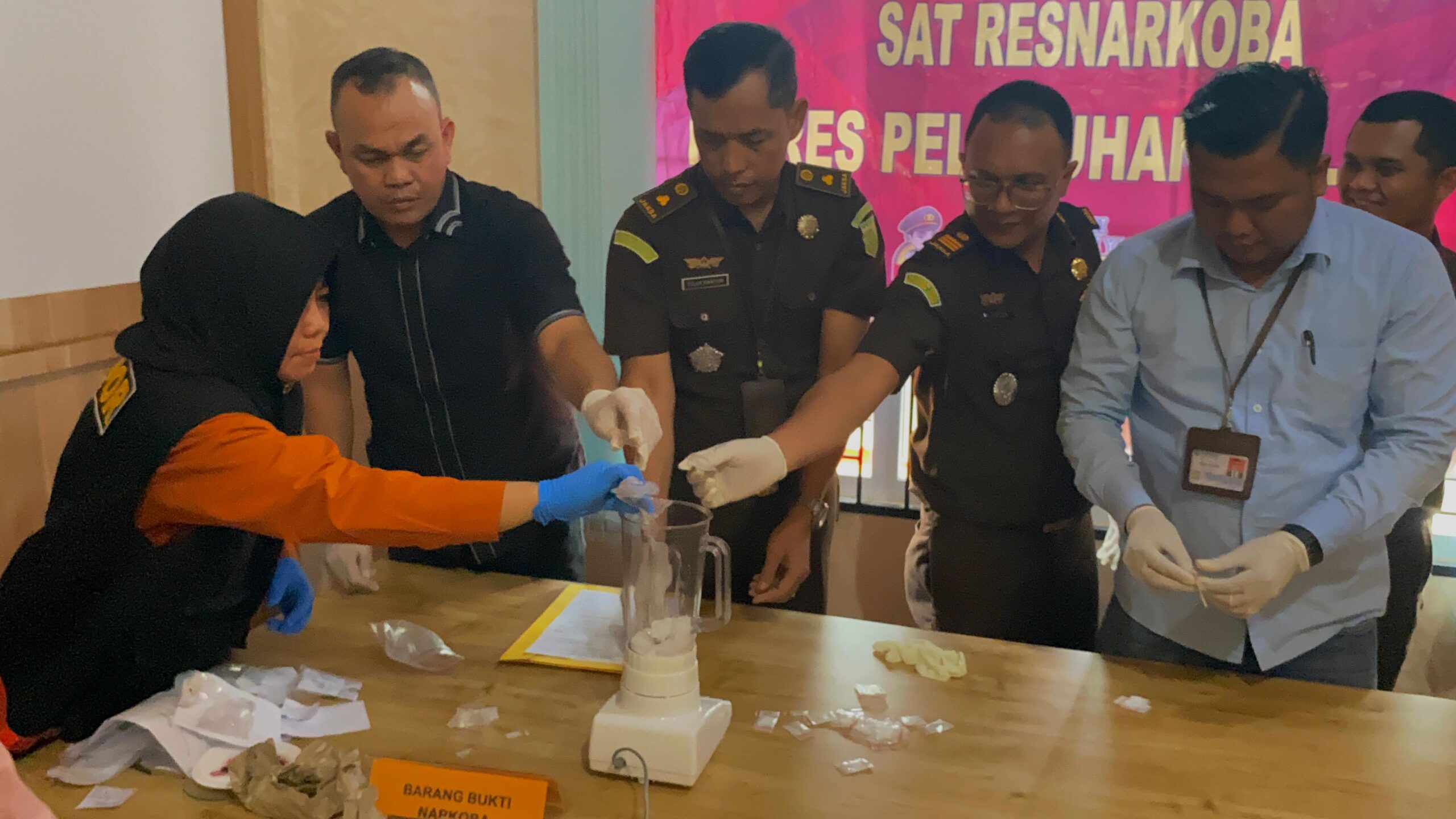 Proses pemusnahan dilakukan dengan prosedur yang ketat. Barang bukti shabu dimusnahkan dengan cara diblender bersama air deterjen, kemudian hasilnya dibuang ke dalam saluran kloset. Sementara itu, barang bukti ganja dimusnahkan dengan cara dibakar di halaman belakang Polres Pelabuhan Belawan.