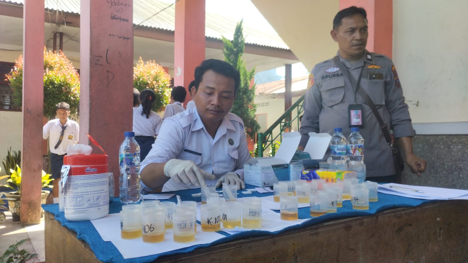 “Menurut kepala sekolah SMP Negeri 7 Kota Pematangsiantar Mangiring Panjaitan SP.d .kegiatan ini sangat baik dalam mendukung kedisplinan kepada guru serta pelajar disekolah ini, baik disekolah dan diluar dari sekolah agar menjaga siswa dan para guru ke arah negatif .Selanjutnya siswa SMP yang dites urine diikuti dari siswa para laki -i kelas 8 dan para guru , bertujuan untuk mendeteksi penyalahgunaan narkoba .Tentunya kegiatan ini bagian upaya pencegahan dan pemberantasan penyalahgunaan narkoba di lingkungan pendidikan,ujarnya.