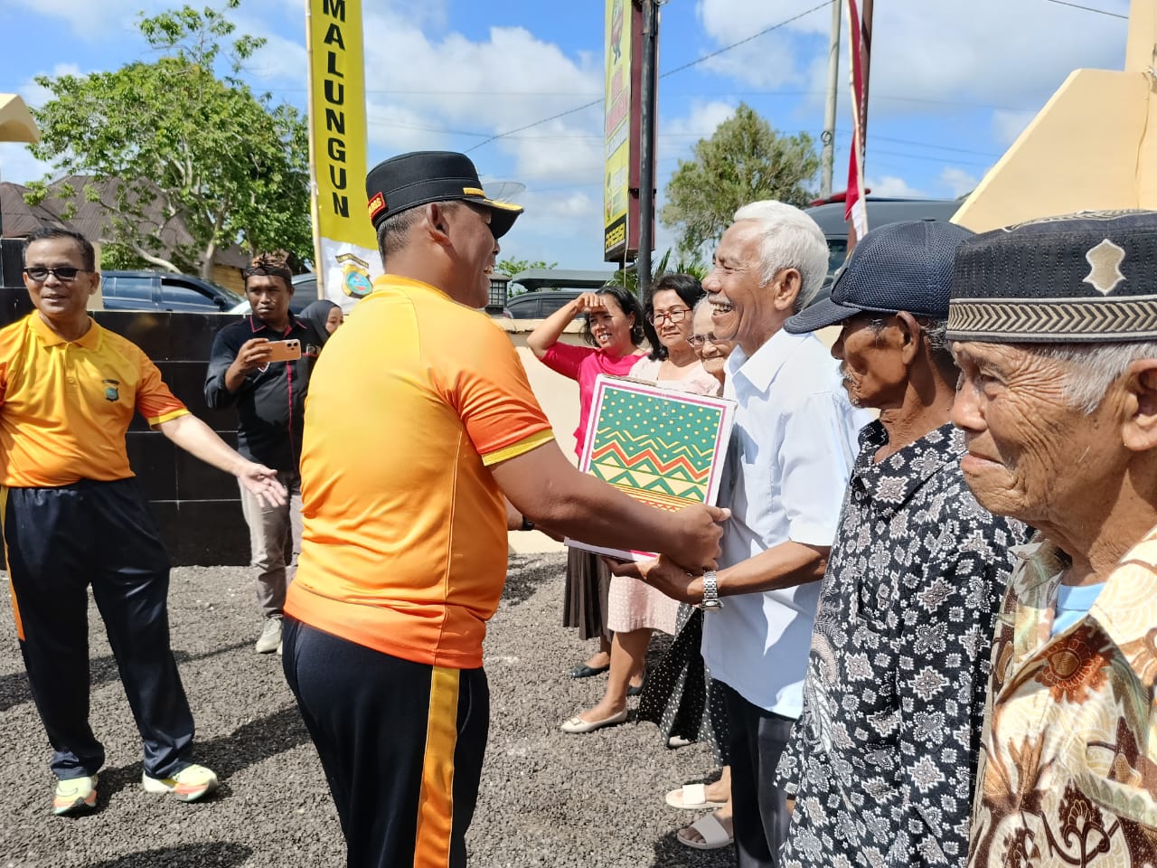 Kehadiran seluruh jajaran pimpinan Polres Simalungun dalam kegiatan ini menunjukkan komitmen kolektif dalam melayani masyarakat. Wakapolres KOMPOL Edi Sukamto, SH, MH, terlihat secara langsung membantu para lansia yang kesulitan berjalan untuk mengambil paket bantuan mereka.