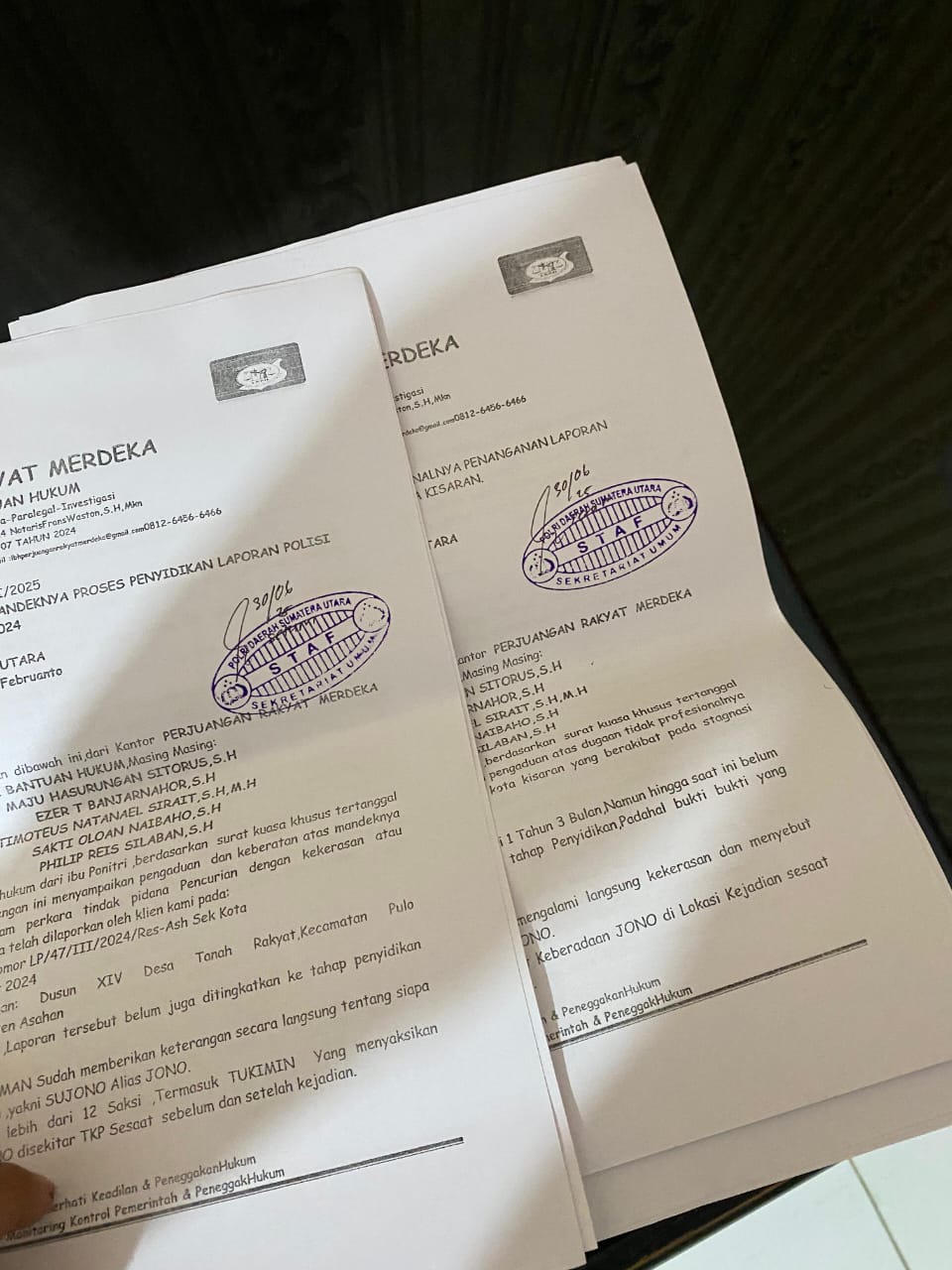 Kabupaten Asahan -Kisaran 29 Juni 2025 — Tim kuasa hukum Ponitri, pelapor dalam perkara dugaan tindak pidana pencurian dan kekerasan yang terjadi pada Maret 2024, resmi melayangkan surat keberatan kepada Kapolda Sumatera Utara, Kapolres Asahan, dan Kabid Propam Polda Sumut.