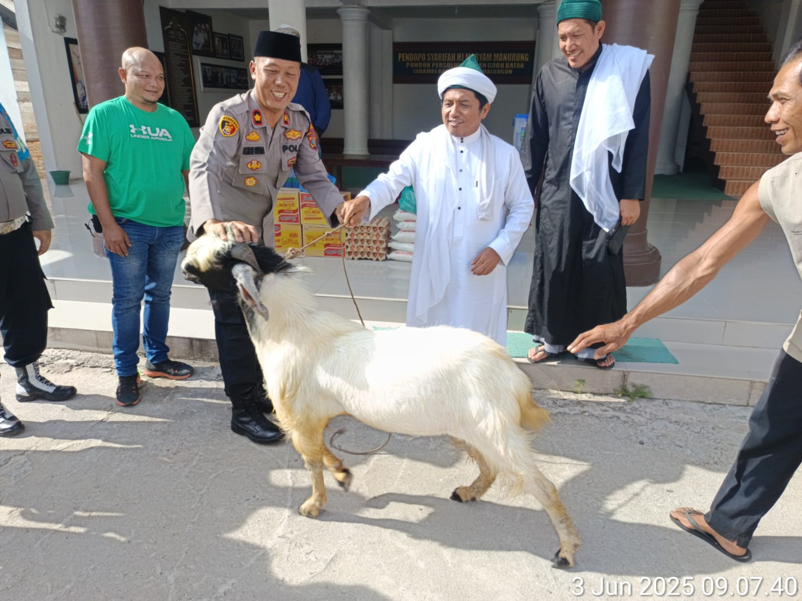 MEDIA NUSANTARANEWS-TODAY . Kabupaten Simalungun – Dalam rangka menyambut Hari Raya Idul Adha 1446 H, Polsek Tanah Jawa Polres Simalungun menunjukkan kepedulian sosial dengan memberikan bantuan kurban dan sembako kepada Pondok Pesantren Tuan Guru Batak (TGB) Serambi Babussalam Simalungun. Kegiatan yang dipimpin langsung oleh Kapolsek Tanah Jawa Kompol Asmon Bufitra S.H., M.H. ini merupakan wujud nyata dari program Polri untuk Masyarakat dalam mempererat hubungan dengan lembaga keagamaan di wilayah hukumnya.