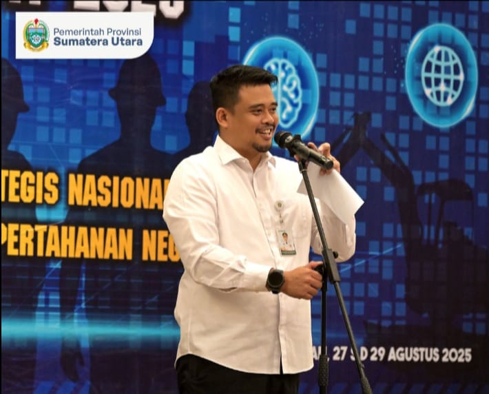 Medan – Gubernur Sumatera Utara (Sumut) Muhammad Bobby Afif Nasution menegaskan komitmennya agar Sumut berkontribusi besar bagi penguatan industri pertahanan nasional. Harapan itu disampaikannya saat membuka Kuliah Kerja Iptek Pasis Sesko AU A-63, yang digelar di Hotel Santika Premiere Dyandra Hotel & Convention, Jalan Kapten Maulana Lubis, Medan, Rabu (27/8).
