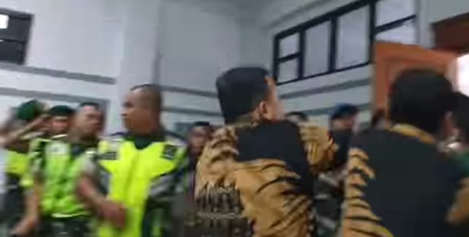 Sementara itu, Bonaerges mengibarkan bendera One Piece sebagai simbol perlawanan dan keadilan yang belum ditegakkan. Aksinya langsung direspons oleh petugas TNI yang berjaga. Bona dibawa keluar ruang sidang secara paksa.