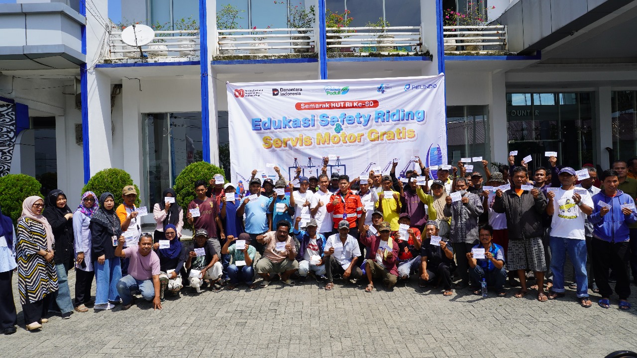 Edukasi safety riding dilaksanakan di Kantor Pelindo Regional 1 pada Selasa (12/8/2025) dengan materi disampaikan langsung oleh pihak Polres Pelabuhan Belawan. Penukaran voucher servis motor berlangsung pada 12 hingga 15 Agustus 2025.