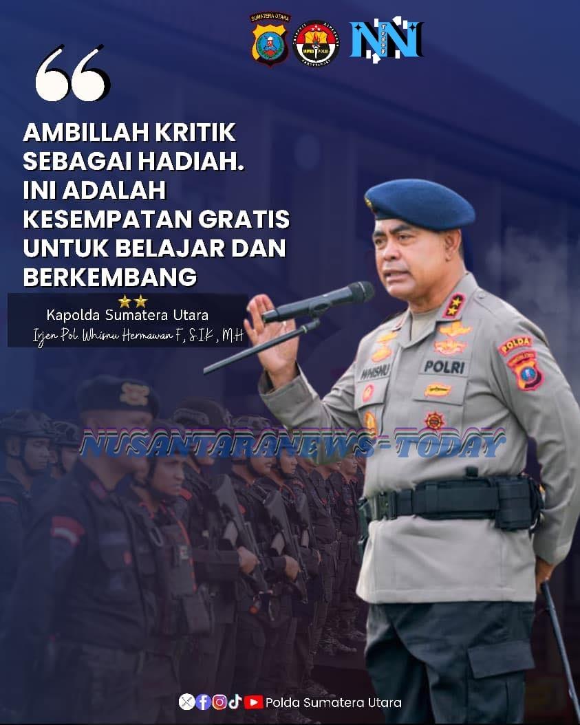 Sumut, Nusantaranews-today.com – Tidak semua orang mampu memandang kritik sebagai sesuatu yang positif. Namun bagi Irjen Pol. Whisnu Hermawan F., S.I.K., M.H., kritik justru adalah ruang belajar dan kesempatan untuk bertumbuh.