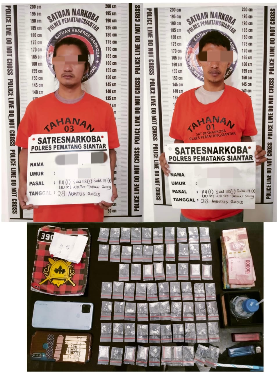 Kedua terduga pengedar tersebut berinisial MDA (33) warga Jln. Diponegoro Kelurahan teladan kecamatan siantar barat Kota pematangsiantar dan RF (35) warga Jln. rakutta sembiring kelurahan naga pita kec. siantar martoba Kota pematangsiantar.