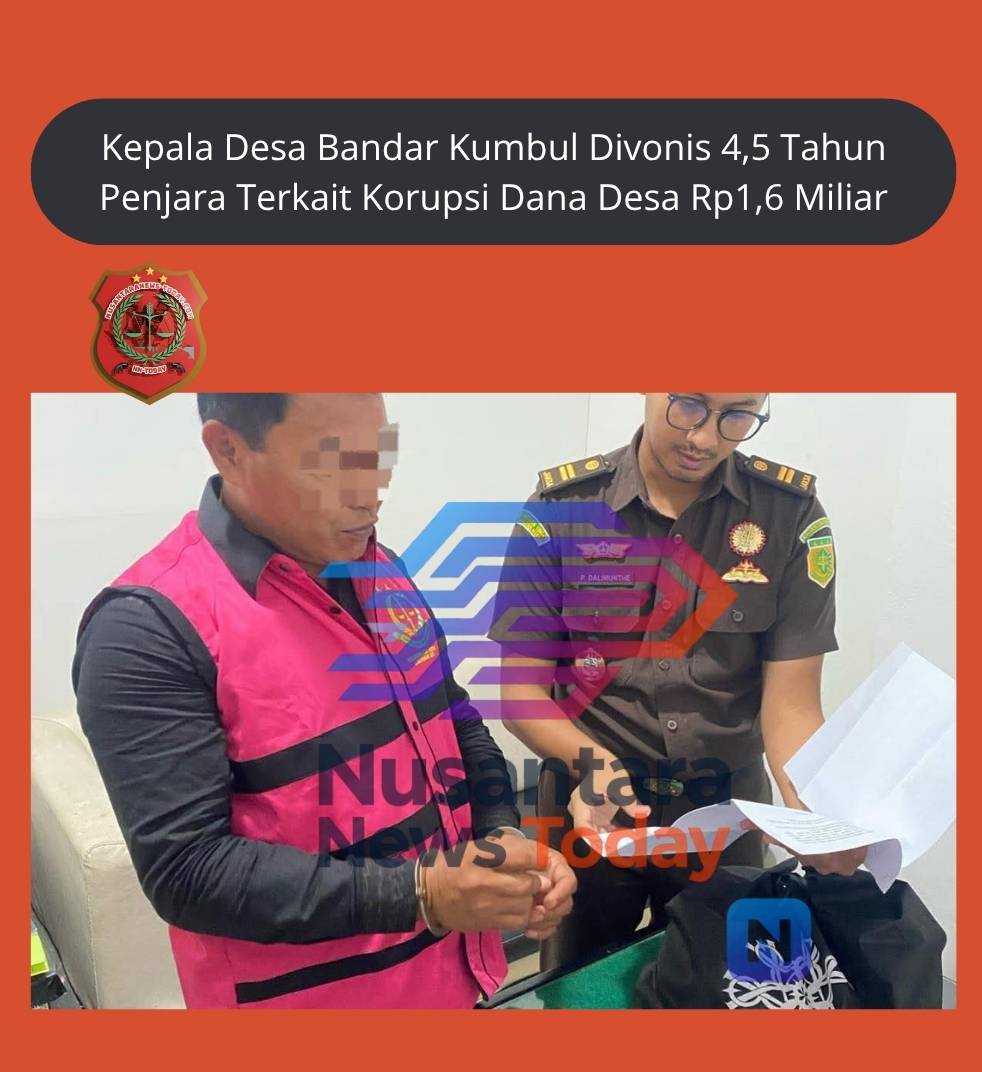 MEDAN – Majelis Hakim Pengadilan Tindak Pidana Korupsi (Tipikor) pada Pengadilan Negeri (PN) Medan menjatuhkan hukuman 4 tahun 6 bulan penjara kepada M Toha Hasibuan, Kepala Desa Bandar Kumbul, Kecamatan Bilah Barat, Kabupaten Labuhanbatu. Terdakwa dinyatakan terbukti bersalah melakukan tindak pidana korupsi dana desa yang mengakibatkan kerugian negara mencapai Rp1,615 miliar.