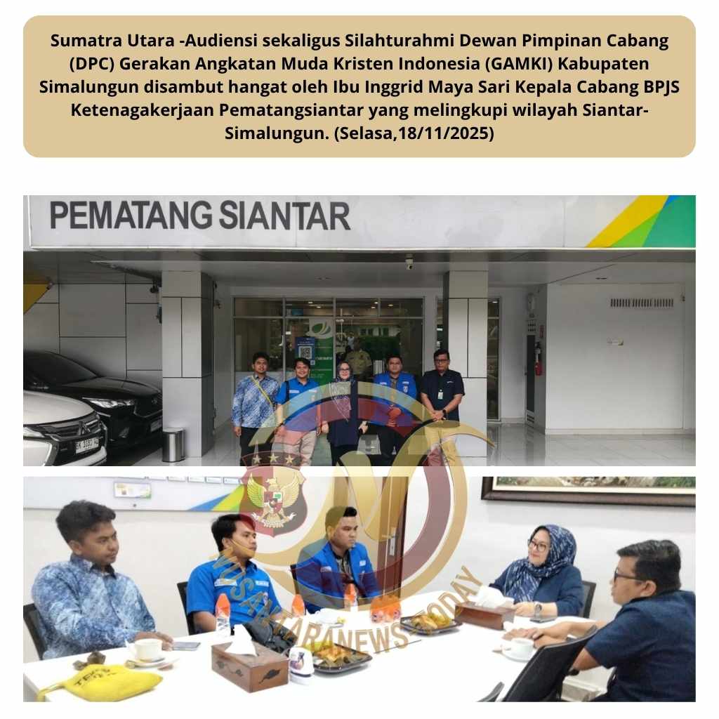 Sumatra Utara -Audiensi sekaligus Silahturahmi Dewan Pimpinan Cabang (DPC) Gerakan Angkatan Muda Kristen Indonesia (GAMKI) Kabupaten Simalungun disambut hangat oleh Ibu Inggrid Maya Sari Kepala Cabang BPJS Ketenagakerjaan Pematangsiantar yang melingkupi wilayah Siantar-Simalungun. (Selasa,18/11/2025)