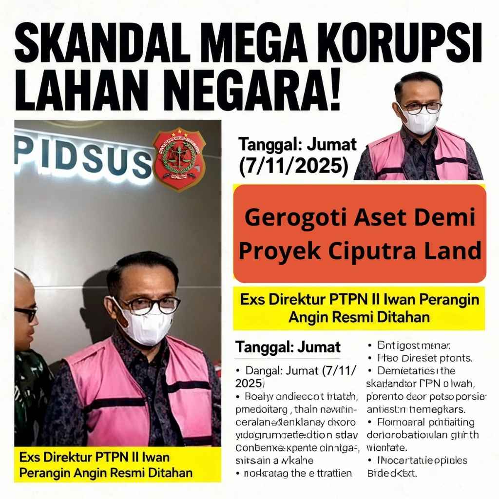 MEDAN – Kejaksaan Tinggi Sumatera Utara (Kejatisu) kembali membuat gebrakan! Mantan Direktur PTPN II, Iwan Perangin Angin (IPA), resmi mengenakan rompi tahanan korupsi Kejatisu hari ini, Jumat (7/11/2025). Penahanan ini menjadi bukti ketajaman dan keseriusan Kejaksaan membongkar skandal penjualan aset negara senilai fantastis yang melibatkan nama besar, termasuk pengembang raksasa Citra Land.