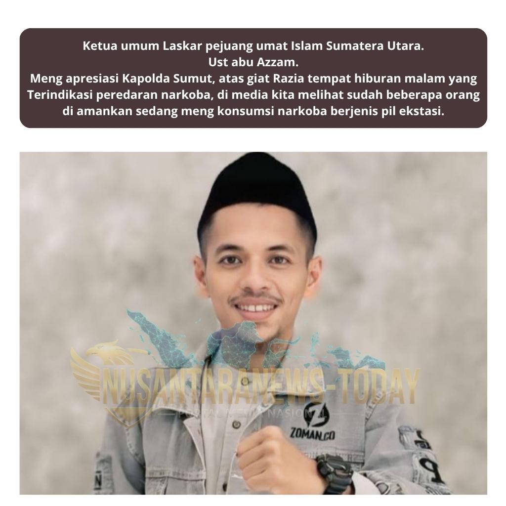 Meng apresiasi Kapolda Sumut, atas giat Razia tempat hiburan malam yang Terindikasi peredaran narkoba, di media kita melihat sudah beberapa orang di amankan sedang meng konsumsi narkoba berjenis pil ekstasi.
