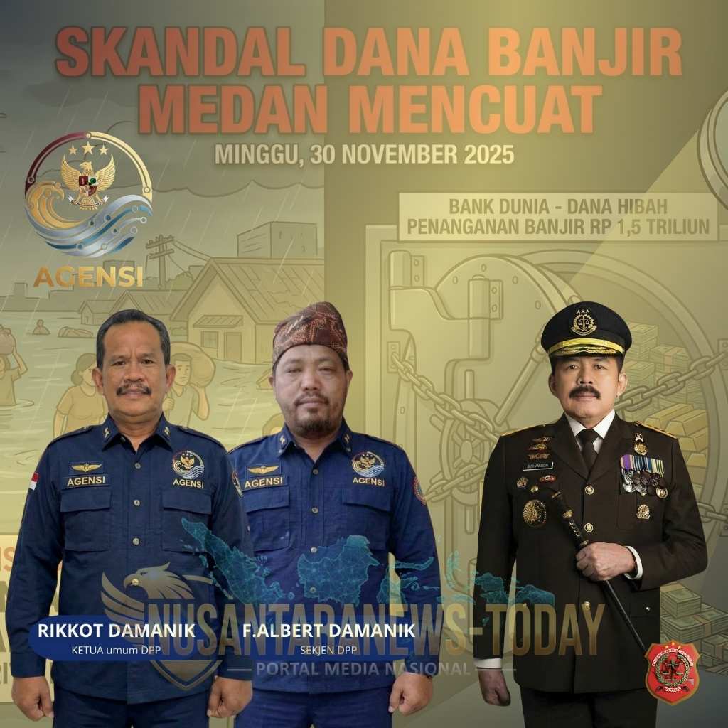 AGENSI menegaskan bahwa kegagalan penanganan banjir yang terus berulang di Medan—padahal tersedia alokasi anggaran APBD dan dana hibah triliunan rupiah—menunjukkan adanya masalah fundamental dalam akuntabilitas Pemko Medan.