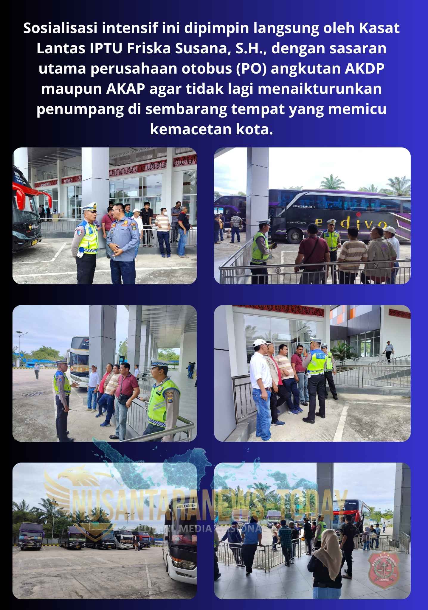 Sosialisasi intensif ini dipimpin langsung oleh Kasat Lantas IPTU Friska Susana, S.H., dengan sasaran utama perusahaan otobus (PO) angkutan AKDP maupun AKAP agar tidak lagi menaikturunkan penumpang di sembarang tempat yang memicu kemacetan kota.