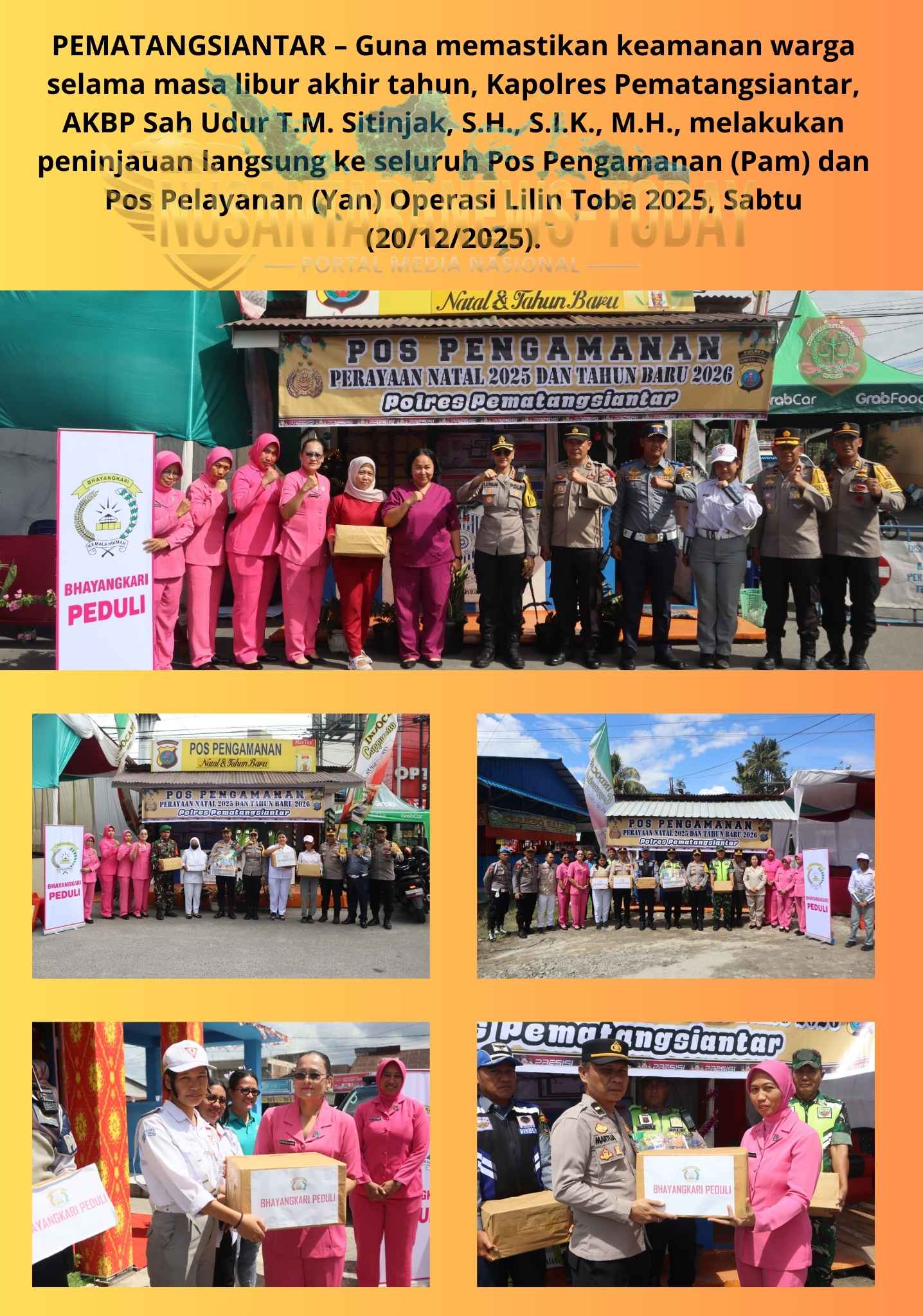 PEMATANGSIANTAR – Guna memastikan keamanan warga selama masa libur akhir tahun, Kapolres Pematangsiantar, AKBP Sah Udur T.M. Sitinjak, S.H., S.I.K., M.H., melakukan peninjauan langsung ke seluruh Pos Pengamanan (Pam) dan Pos Pelayanan (Yan) Operasi Lilin Toba 2025, Sabtu (20/12/2025).
