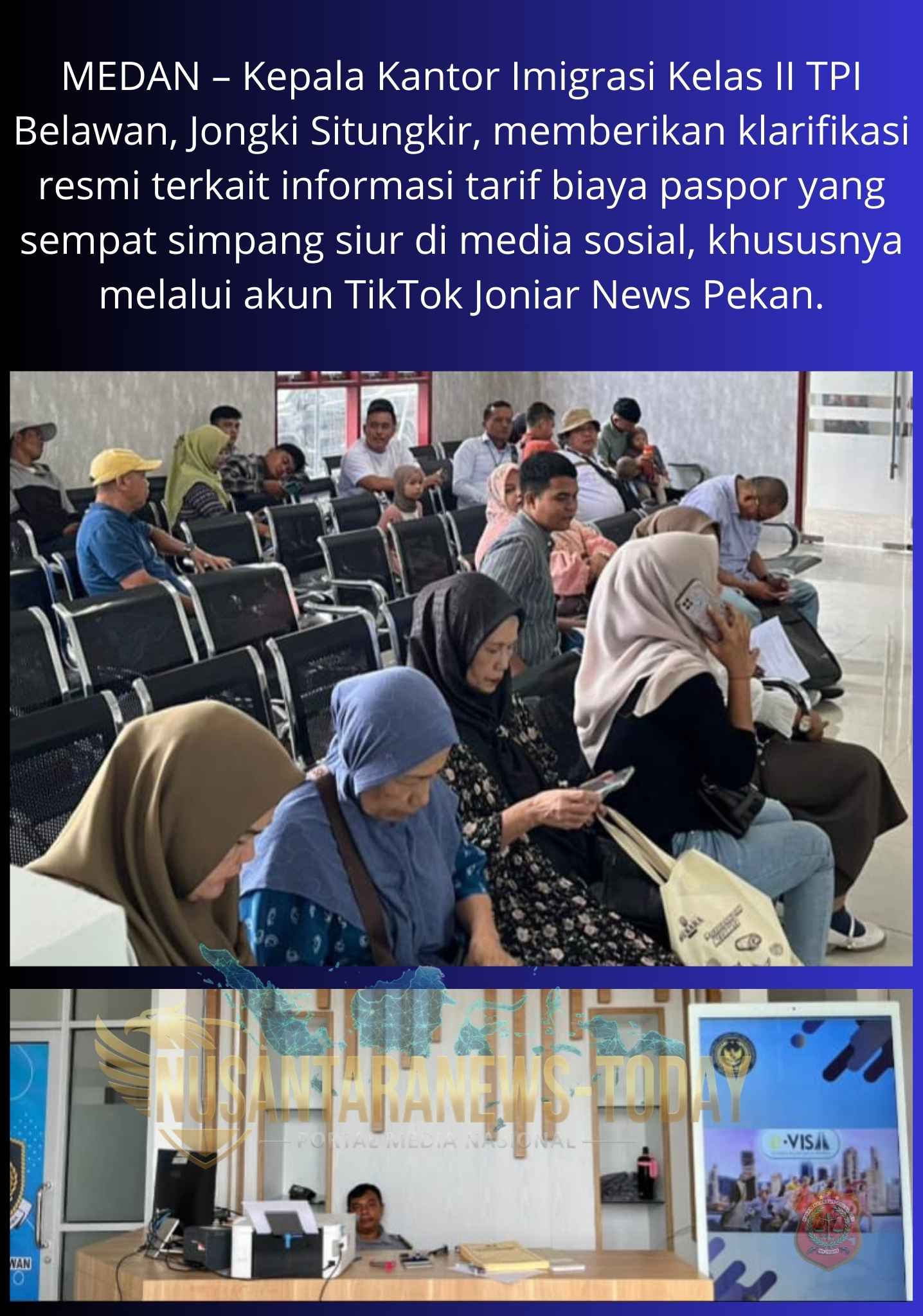 MEDAN – Kepala Kantor Imigrasi Kelas II TPI Belawan, Jongki Situngkir, memberikan klarifikasi resmi terkait informasi tarif biaya paspor yang sempat simpang siur di media sosial, khususnya melalui akun TikTok Joniar News Pekan.