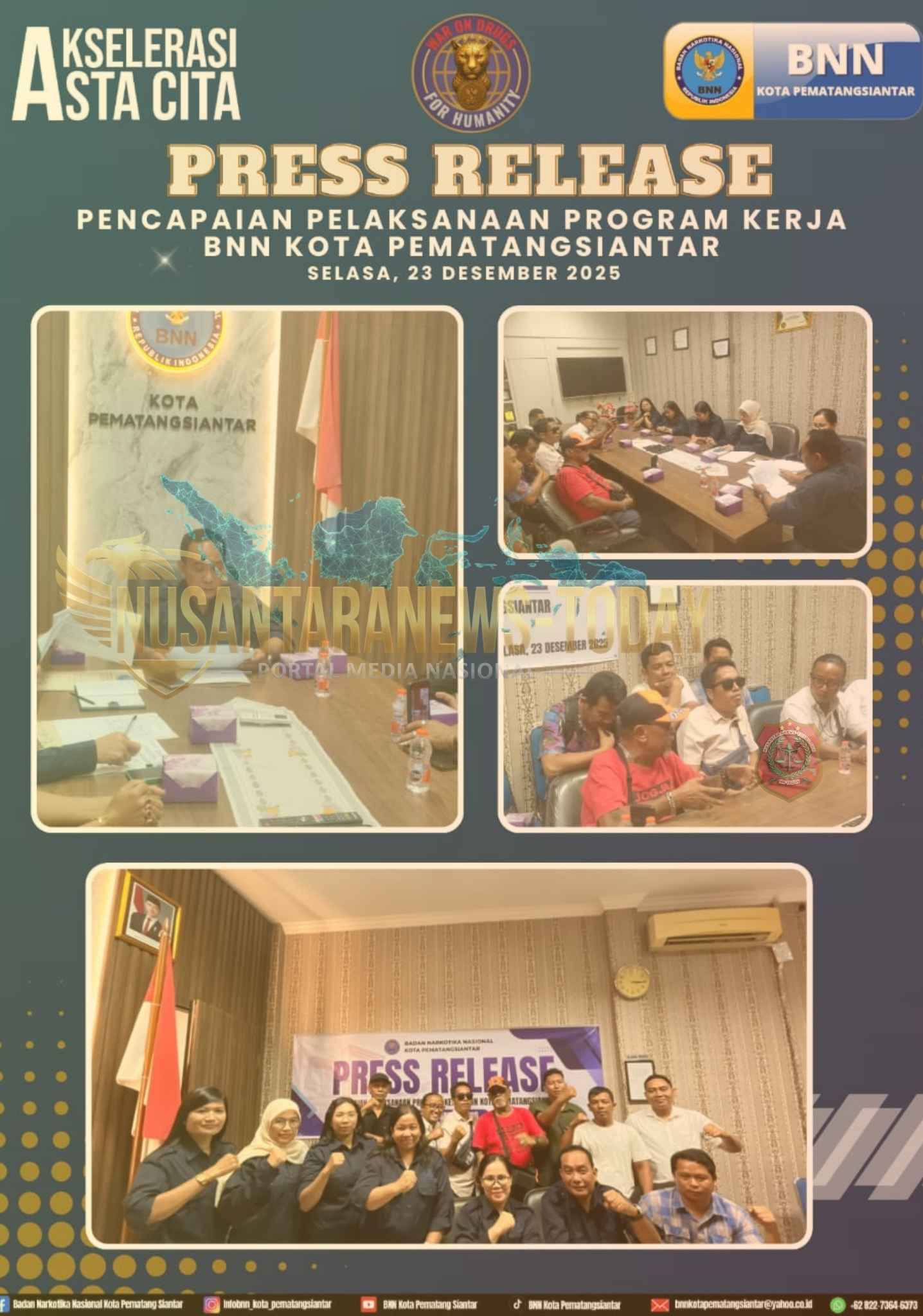 “Fokus utama BNN adalah melindungi masyarakat, khususnya generasi muda. Ke depan, kolaborasi ini akan terus kami perkuat demi mewujudkan Pematangsiantar yang bersih dari narkoba,” tegas Mushab Aulia Hasibuan.