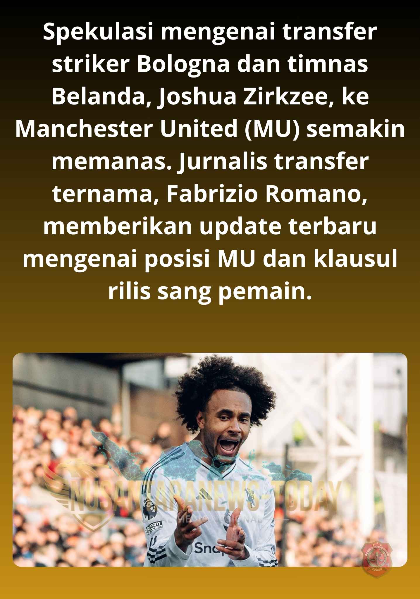 Manchester – Spekulasi mengenai transfer striker Bologna dan timnas Belanda, Joshua Zirkzee, ke Manchester United (MU) semakin memanas. Jurnalis transfer ternama, Fabrizio Romano, memberikan update terbaru mengenai posisi MU dan klausul rilis sang pemain.