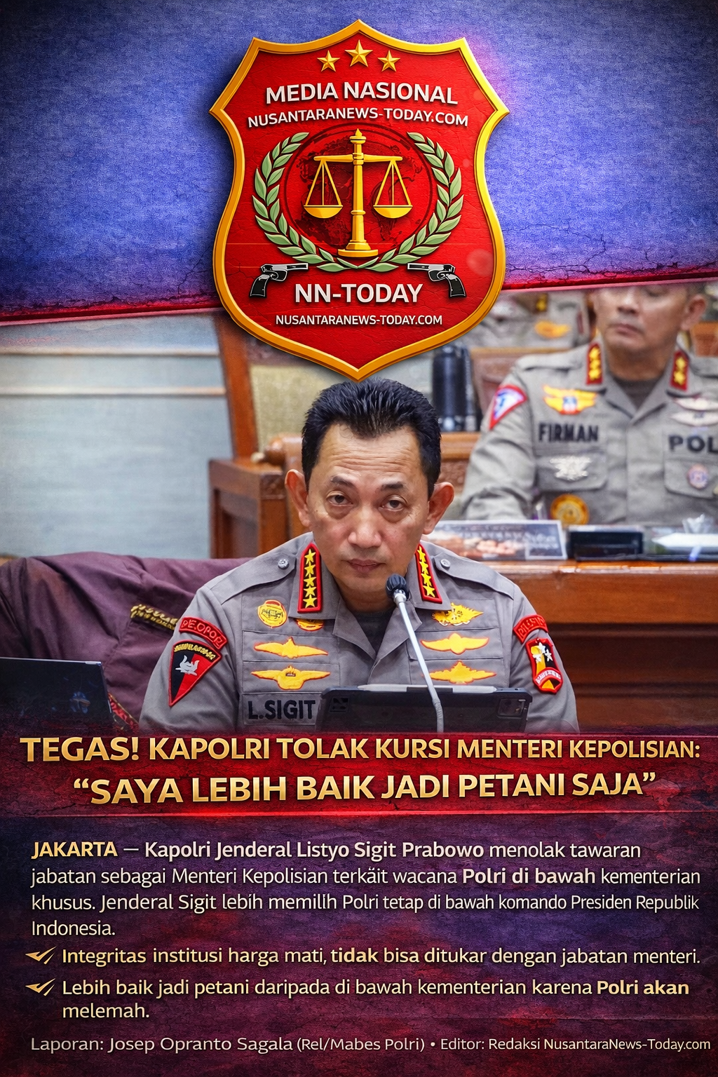 Dalam pernyataannya yang lugas, Jenderal Sigit menekankan bahwa integritas institusi adalah harga mati yang tidak bisa ditukar dengan jabatan menteri.