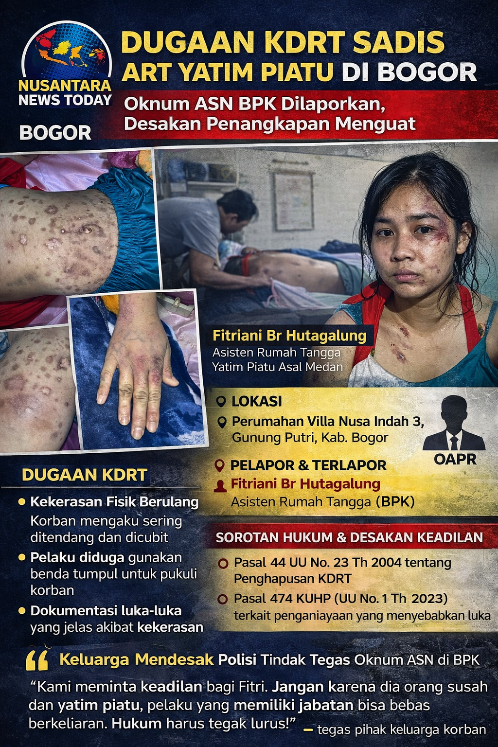 Dugaan KDRT Sadis ART Yatim Piatu di Bogor: