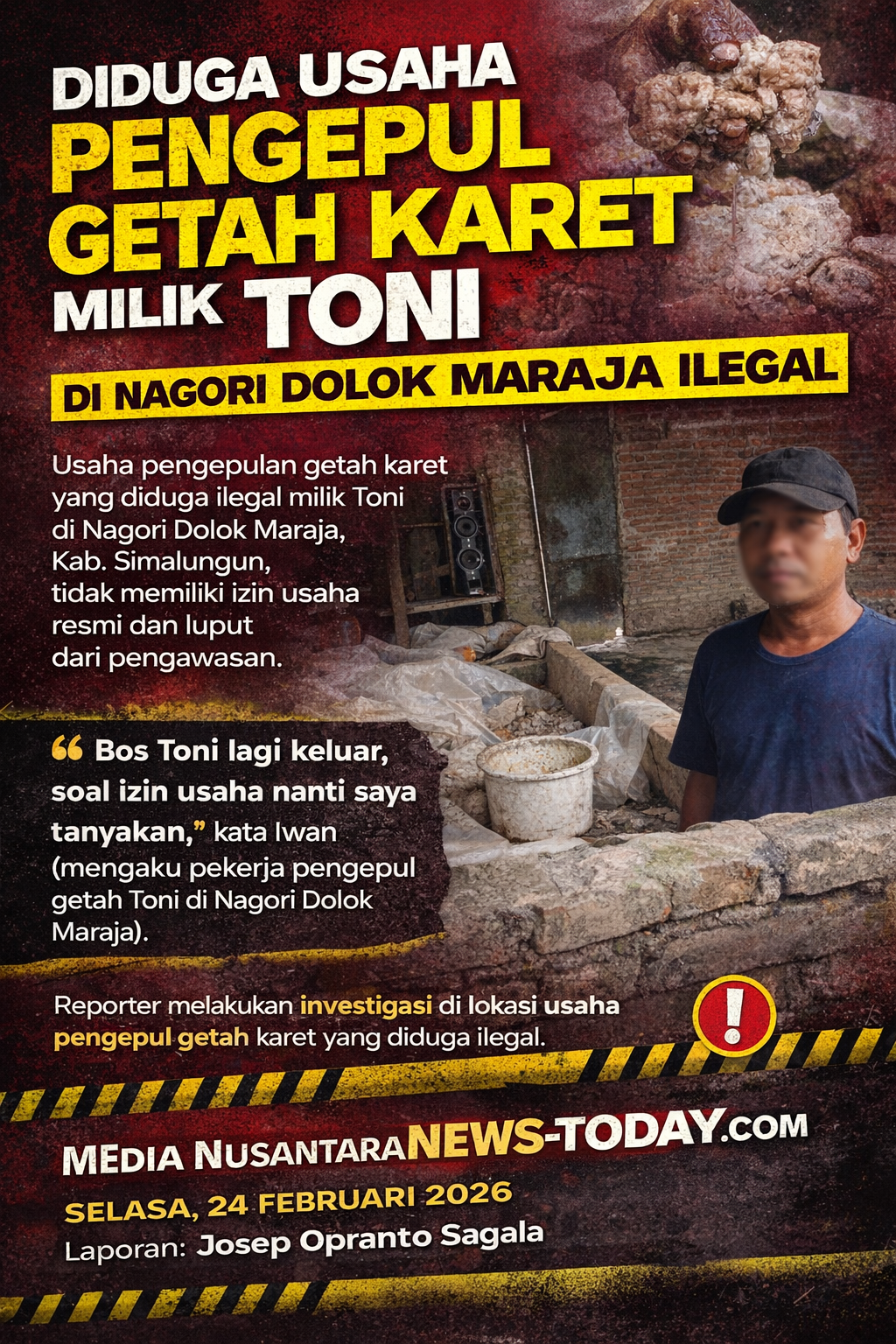 SIMALUNGUN – Praktik usaha pengepul getah karet milik seorang oknum warga berinisial Toni di Nagori Dolok Maraja, Kabupaten Simalungun, kini menjadi sorotan tajam. Pasalnya, usaha yang telah beroperasi lama tersebut diduga kuat tidak mengantongi izin resmi (Ilegal) dan sengaja menghindari kewajiban pajak negara, Rabu (25/02/2026).