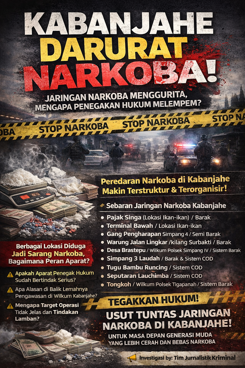 Berita ini merupakan bagian dari fungsi pers sebagai kontrol sosial agar aparat penegak hukum kembali ke relnya sebagai pelindung masyarakat. Publik Kabanjahe kini menunggu, apakah daftar nama di atas akan segera diciduk, atau Kabanjahe akan terus dibiarkan menjadi surga bagi para pengedar sabu.
