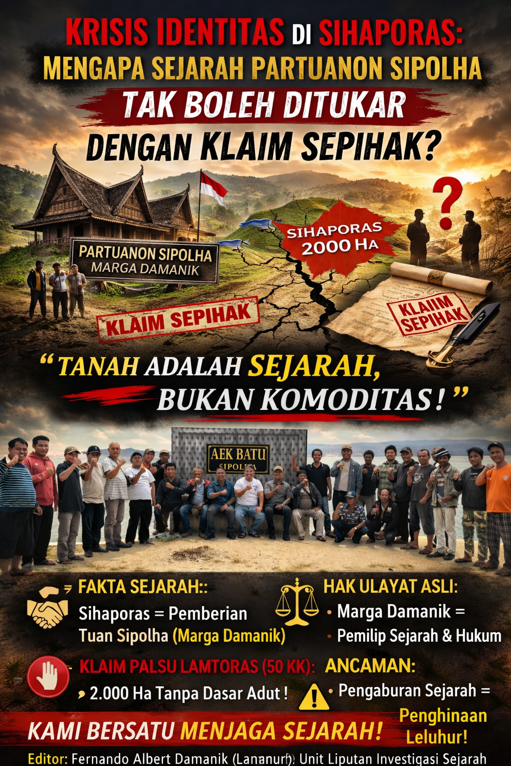 Polemik 2.000 hektare lahan ini kini menjadi ujian bagi integritas masyarakat Simalungun. Akankah sejarah tunduk pada kepentingan kelompok kecil, ataukah kebenaran Partuanon Sipolha akan tetap tegak berdiri?