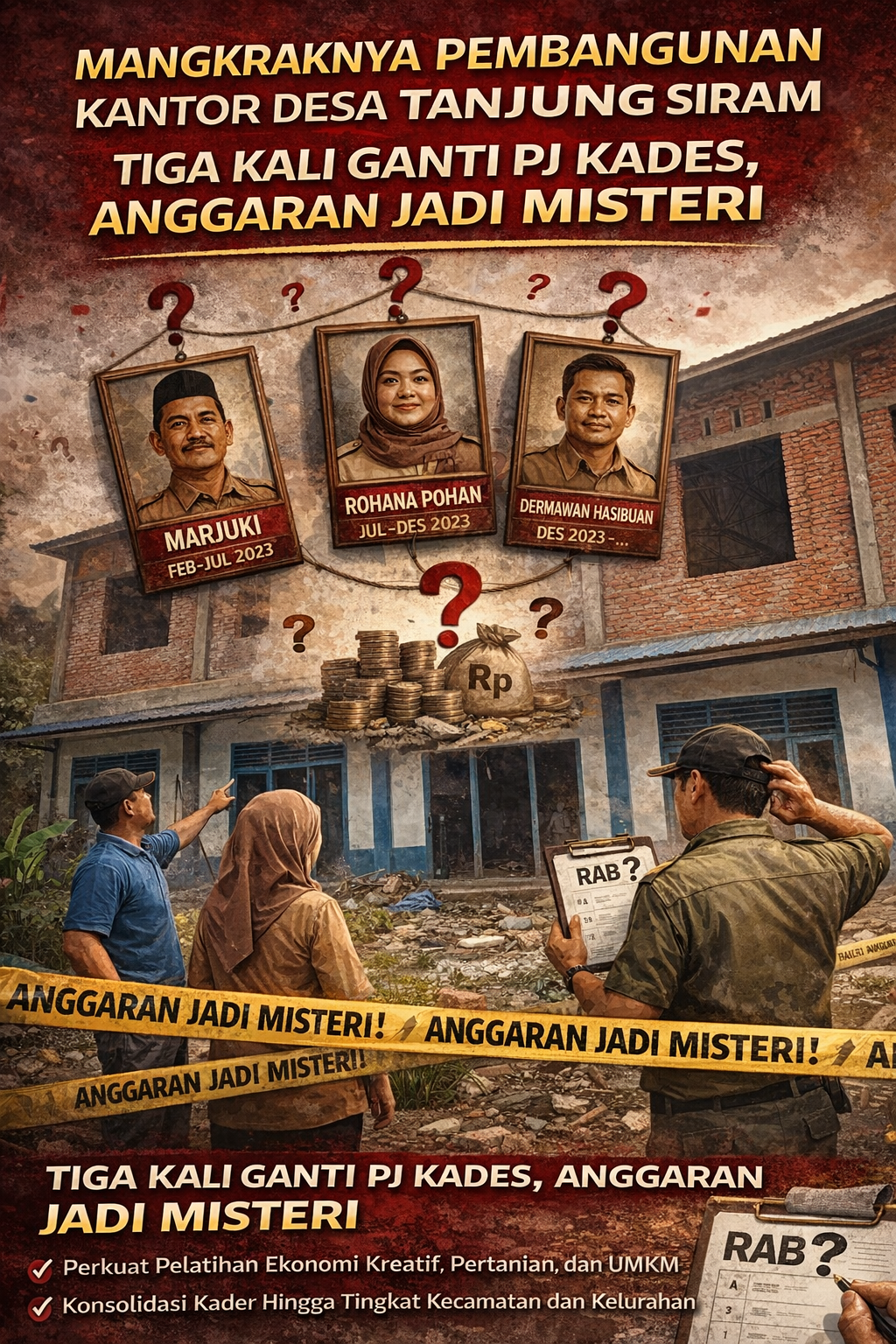 LABUHANBATU – Pembangunan Kantor Desa Tanjung Siram, Kecamatan Bilah Hulu, Kabupaten Labuhanbatu, kini berada di bawah bidikan publik. Proyek yang dibiayai dari Dana Desa (DD) tersebut kini mangkrak dan terbengkalai bagai “proyek hantu” meskipun telah melewati estafet kepemimpinan tiga Penjabat (Pj) Kepala Desa yang berbeda.