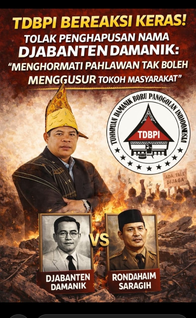 SIMALUNGUN – Gejolak terkait perubahan nama Balai Harungguan di Kabupaten Simalungun memasuki babak baru. Tumpuan Damanik Boru Panogolan Indonesia (TDBPI) secara resmi mengeluarkan pernyataan sikap tegas menolak penghapusan nama Djabanten Damanik yang digantikan oleh nama pahlawan nasional Tuan Rondahaim Saragih.