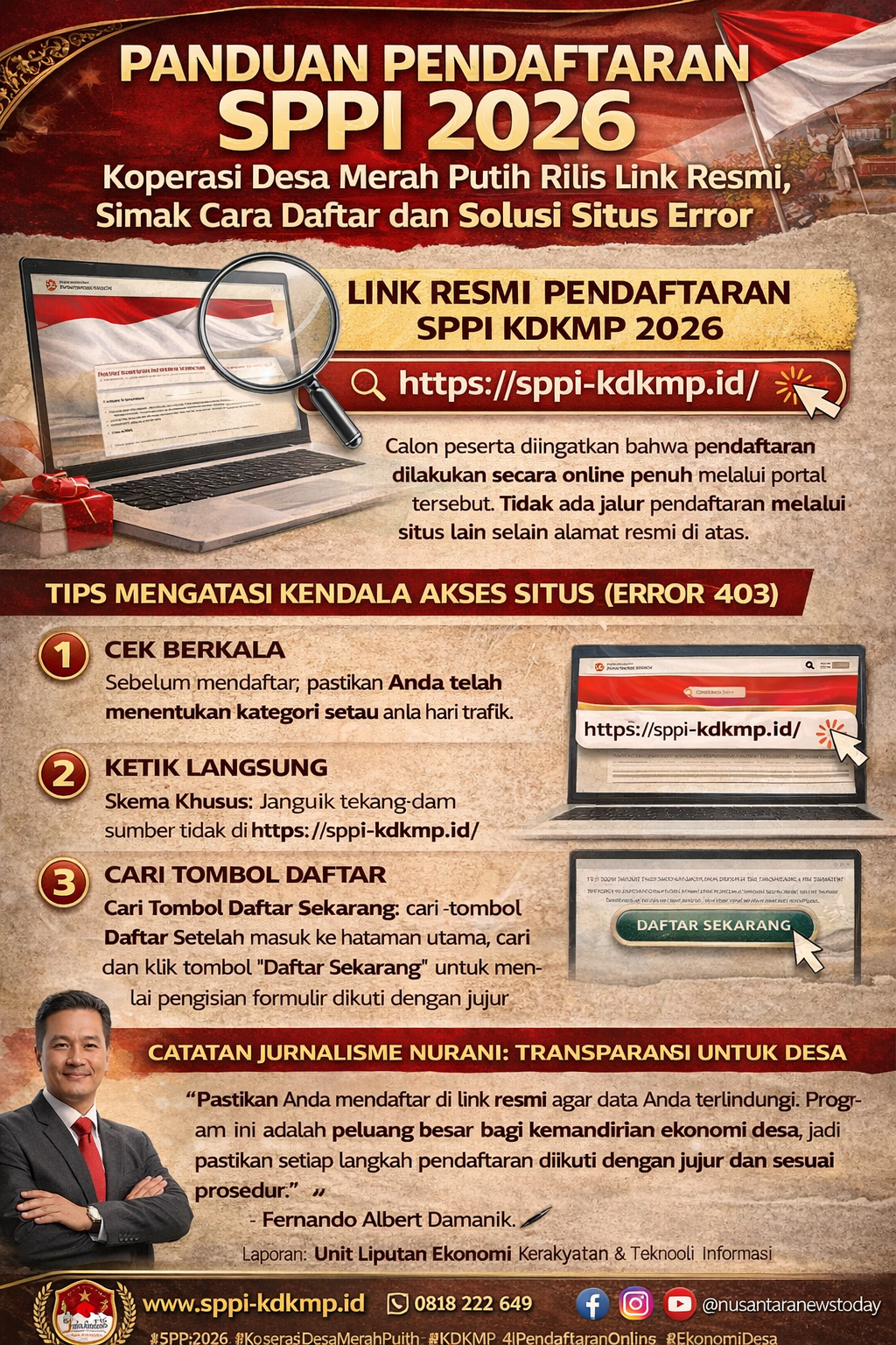 #SPPI2026 #KoperasiDesaMerahPutih #KDKMP #PendaftaranOnline #EkonomiDesa #NusantaraNewsToday #InfoLoker2026