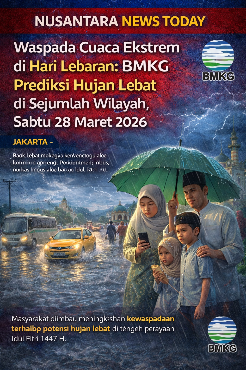 JAKARTA – Badan Meteorologi, Klimatologi, dan Geofisika (BMKG) merilis prakiraan cuaca terbaru untuk hari Sabtu (28/03/2026). Di tengah suasana suka cita Hari Raya Idul Fitri 1447 H, masyarakat diimbau untuk tetap waspada terhadap potensi cuaca signifikan yang dapat memengaruhi aktivitas silaturahmi dan perjalanan mudik.