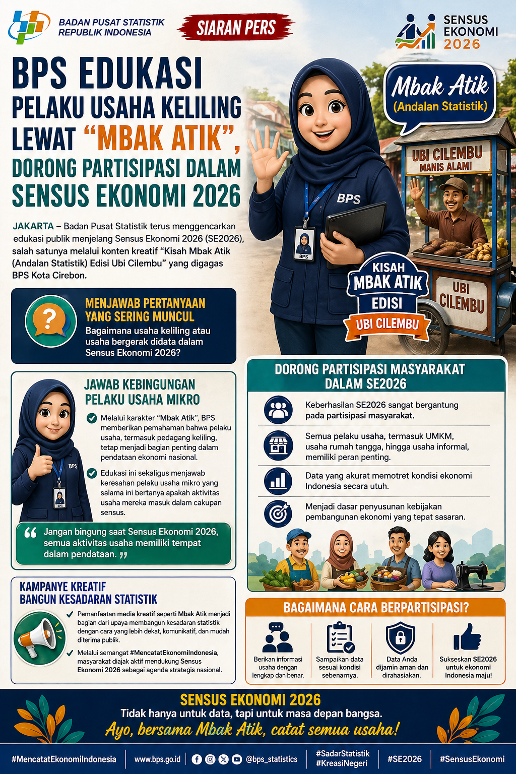 JAKARTA – terus menggencarkan edukasi publik menjelang Sensus Ekonomi 2026 (SE2026), salah satunya melalui konten kreatif “Kisah Mbak Atik (Andalan Statistik) Edisi Ubi Cilembu” yang digagas .