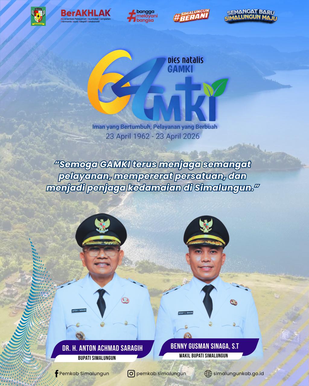 Bupati Simalungun Anton Achmad Saragih bersama Wakil Bupati Benny Gusman Sinaga menyampaikan ucapan selamat sekaligus harapan agar GAMKI terus menjadi kekuatan moral dan sosial dalam menjaga persatuan, pelayanan, dan perdamaian di tengah masyarakat.