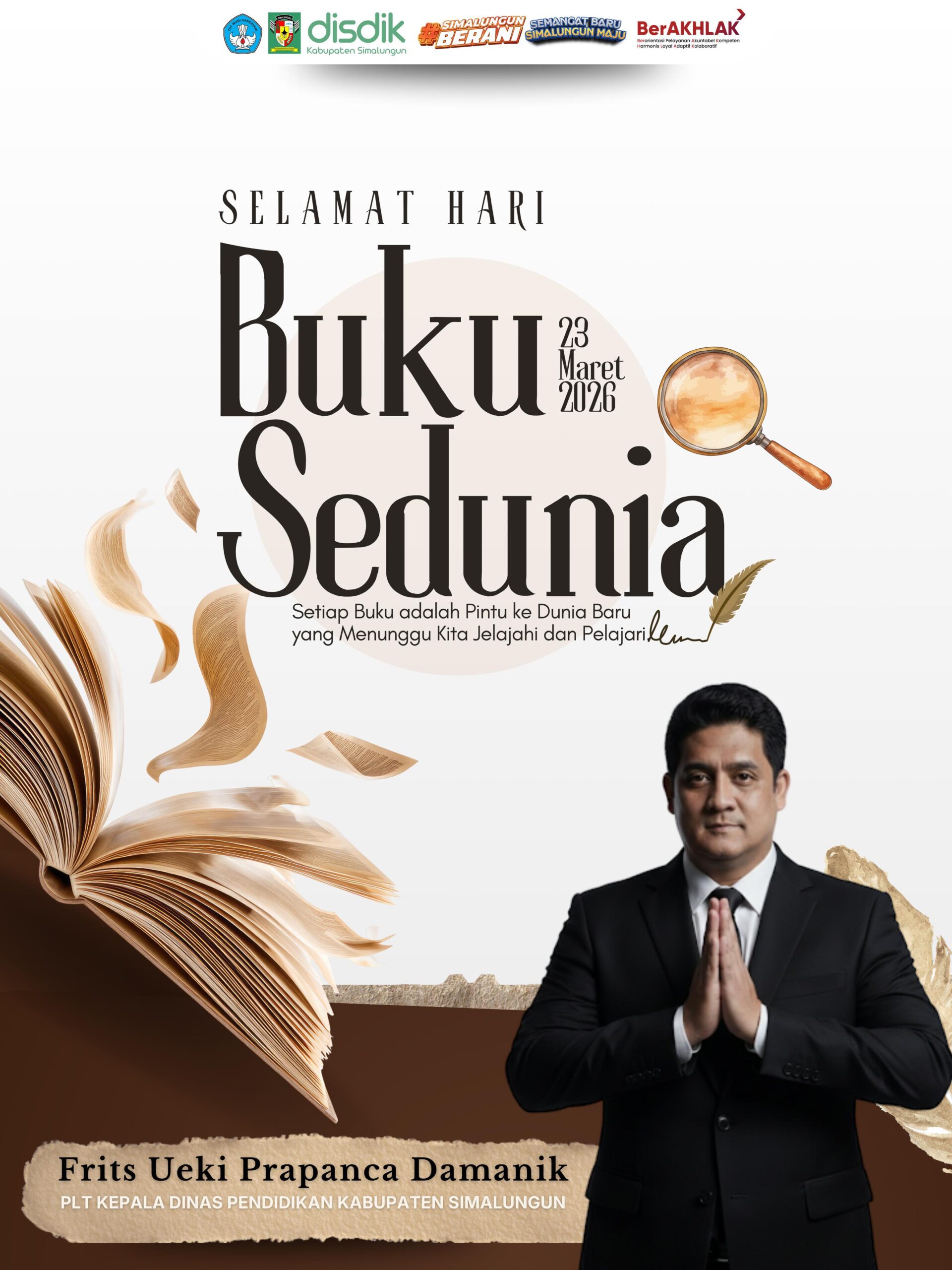 Melalui ucapan peringatan Hari Buku Sedunia 2026, Plt Kepala Dinas Pendidikan Kabupaten Simalungun, Frits Ueki Prapanca Damanik, mengajak masyarakat menjadikan buku sebagai jendela ilmu dan fondasi membangun sumber daya manusia yang unggul.