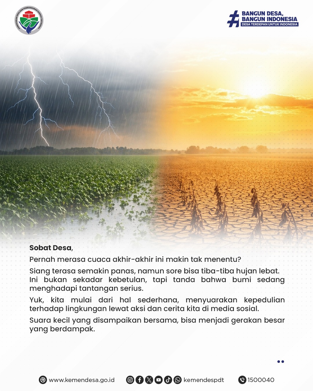Melalui pesan reflektif bertajuk “Bumi tidak membutuhkan siapa yang benar atau salah, yang dibutuhkan adalah langkah bersama,” pemerintah mengajak masyarakat, khususnya warga desa, untuk memperkuat kesadaran kolektif dalam menghadapi tantangan perubahan iklim dan kerusakan lingkungan.
