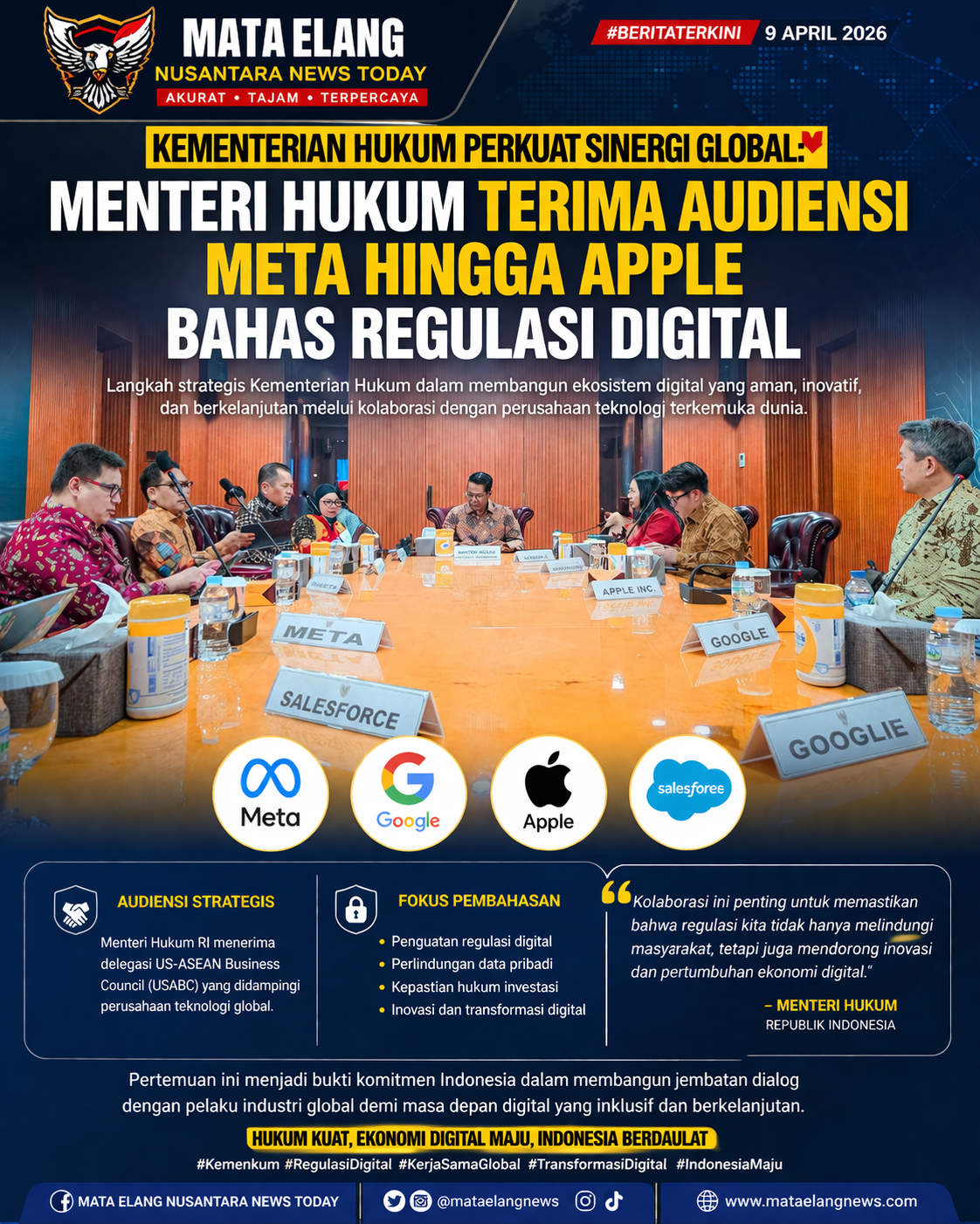 JAKARTA – Menteri Hukum Republik Indonesia resmi menerima audiensi delegasi US-ASEAN Business Council (USABC) yang didampingi oleh raksasa teknologi global seperti META, Google, Apple, dan Salesforce. Pertemuan strategis ini difokuskan pada penguatan kerja sama lintas sektor, khususnya dalam menghadapi tantangan transformasi digital yang semakin dinamis.