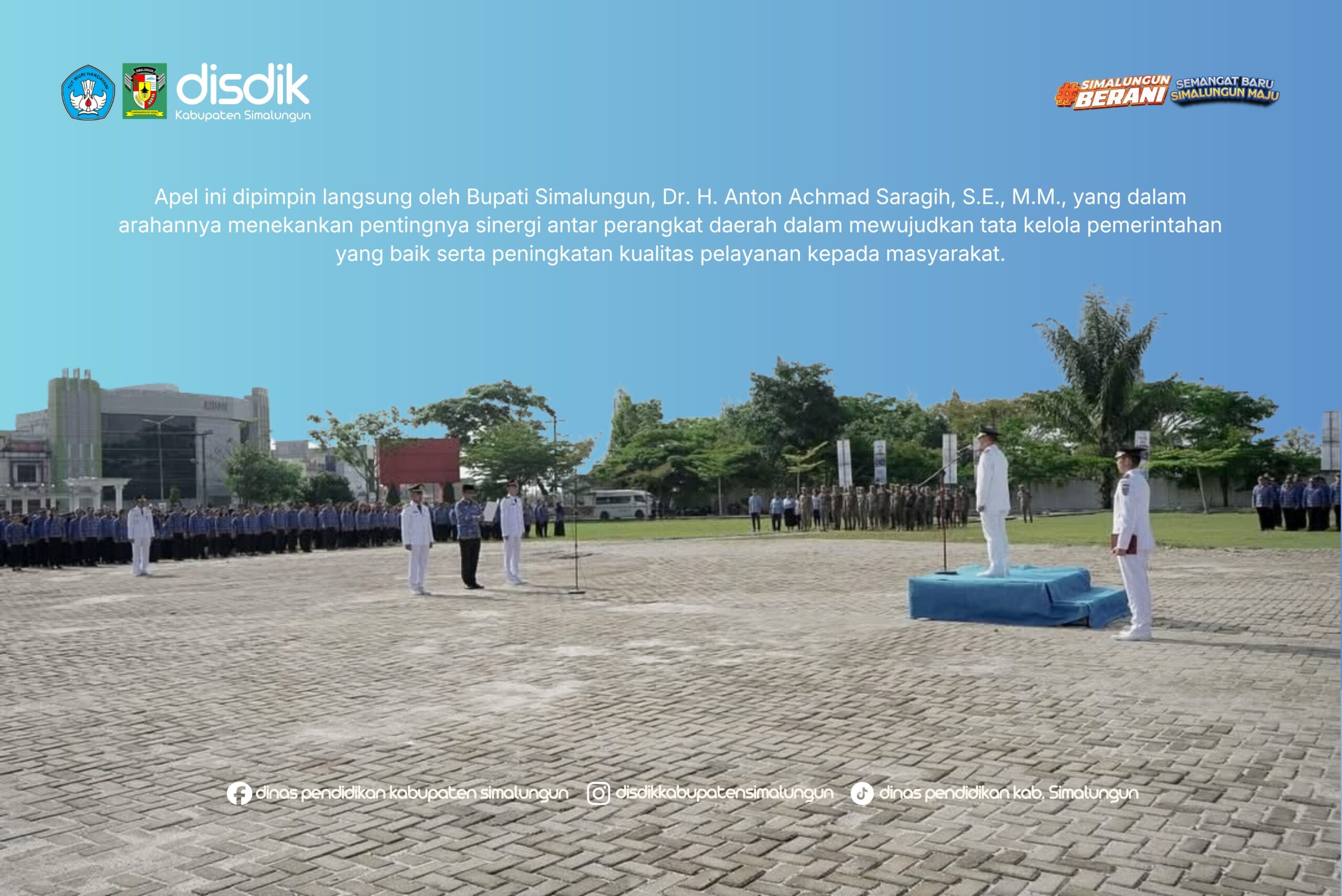 Kegiatan yang dipusatkan di lingkungan Kantor Bupati Simalungun itu dipimpin langsung Bupati Anton Achmad Saragih, didampingi Wakil Bupati Benny Gusman Sinaga, serta diikuti jajaran OPD, ASN, unsur Forkopimda dan berbagai elemen pemerintahan daerah.