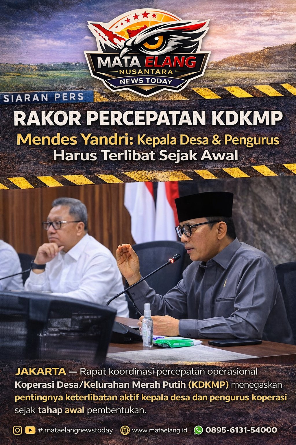 Menteri Desa dan Pembangunan Daerah Tertinggal (PDT), Yandri Susanto, mendorong agar kepala desa dan pengurus koperasi tidak hanya menjadi pelaksana, tetapi juga bagian dari manajemen pelapis dalam struktur KDKMP.